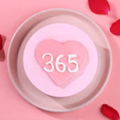 This adorable bento cake is perfect for romantic moments. With a soft, chocolate-flavoured cream base, it’s topped with a fondant heart adorned with the number "365," symbolising a love that lasts all year. The gentle pink tones add a delicate touch, making it an ideal treat for any intimate celebration. Whether you're celebrating an anniversary, Valentine’s Day, or just expressing your love, this charming cake is designed to be a sweet, memorable gift. A perfect balance of flavours and emotions, wrapped in a beautiful design.