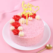 This delightful strawberry-flavored cake is a perfect treat to share with your loved one. Covered in soft, creamy frosting and adorned with a charming "Love You More" topper, it’s a sweet symbol of affection. The combination of sweet strawberry layers and creamy swirls of frosting in red and white makes this cake an irresistible choice for romantic occasions. Whether you're celebrating Valentine’s Day, an anniversary, or just a special moment, this cake makes every bite an expression of love. A true heartwarming gift for someone special.