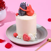 With its sweet and charming design, this cake perfectly captures the warmth of love. The white base sets the stage for two adorable characters, one in grey and the other in coral, locked in a tender hug. Their embrace is framed by hearts and small pearls, adding a delicate touch to the cake’s appearance. Choose your favourite flavour to make each bite as delightful as the loving design. Ideal for Hug Day, this cake expresses affection and togetherness, making it the perfect way to celebrate those you hold dear.
