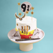 A magical masterpiece for every wizard at heart, this Harry Potter cake captures the essence of the enchanting world. Decorated with the iconic Platform 9¾ topper, golden stars, the HP emblem, and a flying snitch, every detail feels straight out of Hogwarts. With spell scrolls and a wand completing the look, it becomes more than a cake; it’s a doorway to memories, adventures, and celebrations that sparkle with magic. Perfect for birthdays, themed parties, or gifting to Potterheads, it transforms any occasion into a truly spellbinding celebration.