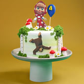 This Masha and the Bear-themed cake brings the magic of childhood to life! Featuring the beloved Masha in her iconic red dress and the playful bear hanging upside down, surrounded by mushrooms and greenery, this cake is a true delight. With a vibrant and whimsical design, it's perfect for any kids' celebration. Made to order in any flavour of your choice, this cake promises to add a touch of fun and sweetness to your little one's special day, making it a memorable treat for all.