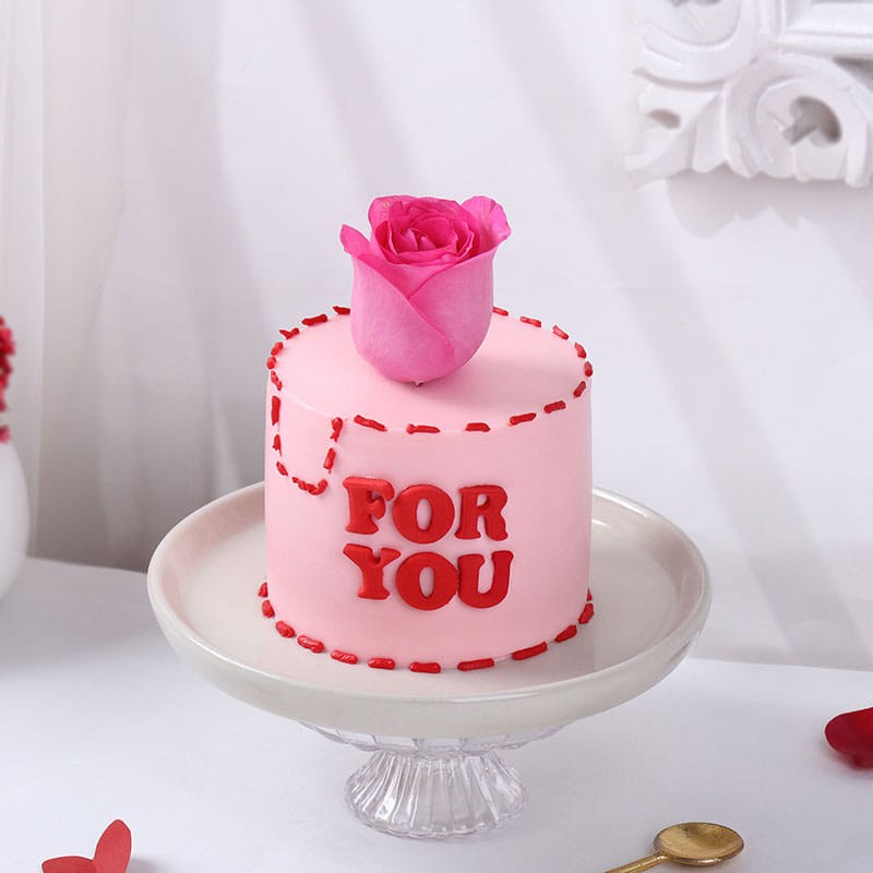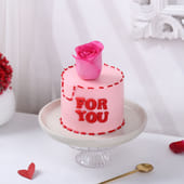 This mouth-watering Butterscotch Cream Cake is the perfect way to express your love. With a soft baby pink base and vibrant red cream piping adorning the top and bottom, it’s a cake that speaks volumes. The bold “FOR YOU” message in red adds a personal touch, while a single pink rose on top completes the design with elegance. The creamy butterscotch flavor, paired with the stunning visual appeal, makes this cake an ideal choice for celebrating love, be it for Valentine’s Day, anniversaries, or any special occasion that calls for a sweet gesture.