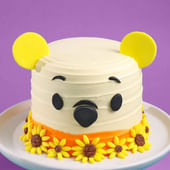 Bring a touch of childhood magic to your celebration with this adorable Pooh Bear-themed cake. Designed with a creamy yellow finish, cute fondant ears, and expressive features, it perfectly captures the charm of the beloved bear. The base is decorated with bright sunflower accents, adding a cheerful pop of colour and warmth. Inside, the soft sponge layers and smooth frosting promise a delightful taste that kids and adults will both enjoy. Ideal for birthdays and themed parties, this cake makes every moment sweet, playful, and unforgettable.