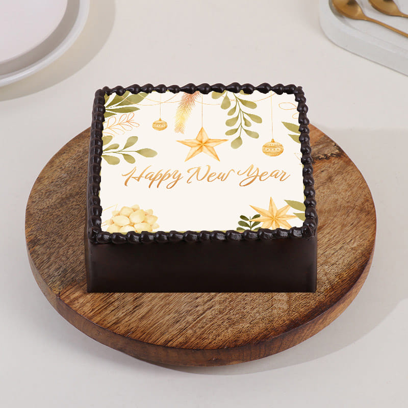Celebrate the New Year in style with this delectable New Year poster chocolate cake! This mouthwatering creation is a true masterpiece, featuring a rich and moist chocolate cake that's generously layered with creamy goodness. Its elegant design showcases a festive New Year poster motif, making it the perfect centerpiece for your celebrations. Whether you're ringing in the New Year with family and friends or hosting a grand party, this cake is sure to delight your taste buds and add a touch of glamour to your event. Indulge in the irresistible blend of chocolate and cream, and start the year on a sweet note with our New Year Poster Chocolate Cake!