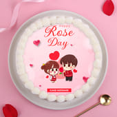 Soft hues and delicate details make this cake a perfect choice for Rose Day. Decorated with smooth frosting and an adorable couple, it captures the joy of giving and receiving a rose. Every slice reveals moist sponge layered with light, creamy goodness that leaves a lingering aftertaste. Ideal for surprising your partner, it adds warmth to the occasion. Thoughtfully crafted to elevate Rose Day, this cake helps create new memories with your beloved, making the moment feel truly meaningful.