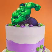 This Hulk-themed cake is the perfect choice for any superhero fan! Decorated with vibrant purple and green hues, it mimics the iconic colours of the Hulk. The fun and playful design is completed with colourful swirls and edible details, making it a standout piece for birthday parties or special events. Whether you're celebrating a Marvel fan or hosting a themed party, this cake will surely leave a lasting impression with both its taste and visual appeal.