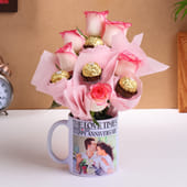 Let love get expressed in the most romantic way as you pass this dreamy combo to your partner. Consisting of pretty hued roses, personalised mug and a personalised comfy cushion, this combo is perfect to pamper your partner with. So, spread your love over something lovely as this combo.