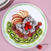 A delectable Mix Fruit Cake, handcrafted to perfection, awaits to embrace your taste buds with lusciousness. Paired harmoniously with a resplendent bouquet of 12 velvety red roses, this delightful duo transcends ordinary gifting. A jubilant celebration of nature's bounty, where sweetness meets elegance, making it the quintessential choice for an unforgettable gift that speaks of love, joy, and cherished moments. Indulgence has never been so captivating; seize this divine amalgamation and gift an experience that forever lingers in the heart. Price Breakup: Blaze Red Velvet Roses ₹850, Fresh Fruit Medley Cake ₹685