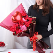 This balloon bouquet turns romance into a moment you can hold. A gleaming heart-shaped foil balloon rises above fresh red and pink roses, creating a soft contrast of passion and tenderness. Wrapped in premium paper and finished with a graceful tie, every detail feels considered and intimate. Designed for romantic occasions, it carries warmth, affection, and quiet drama in equal measure. Ideal to mark a confession, occasions like Valentine’s Day, or a just-because surprise, this Valentine special bouquet arrives ready to leave a lasting impression long after the petals have settled.