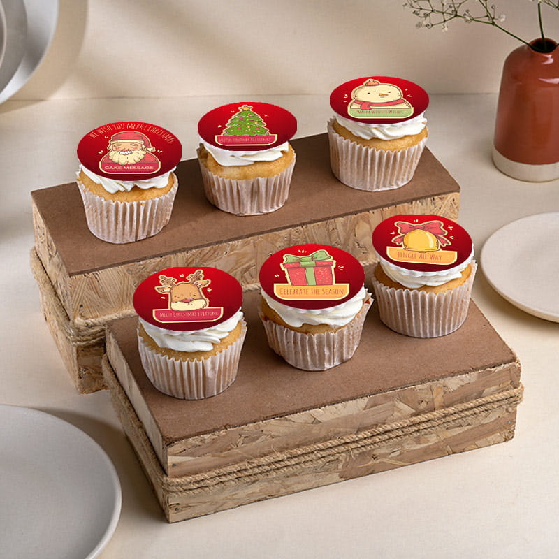 Pick a little Christmas magic with this joyful set of six cupcakes, each crowned with a festive edible topper inspired by the season. Soft, fluffy sponge and smooth frosting come together to create a treat that feels playful, cheerful, and perfect for sharing. The Christmas-themed designs add a charming touch to parties, hampers, and cosy family moments. Whether you’re gifting or celebrating, these cupcakes bring sweetness, warmth, and a lovely dash of holiday spirit to every occasion.
