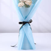 A nice blend that brings together white sola belli, a white bell cup, pampas, and tishi grass, all neatly arranged in a soft blue non-woven wrap and finished with a ribbon detail. The neutral palette and airy textures give it a calm, understated appeal that complements modern and minimal décor. Ideal for birthdays, special occasions, or as a thoughtful gesture, it’s a low-maintenance arrangement that stays fresh in appearance while exuding a quiet sense of charm.