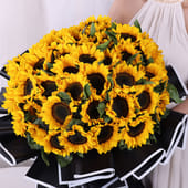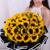 Bursting with 40 radiant sunflowers, wrapped in luxurious black premium paper, this arrangement captures the essence of joy and love. Each sunflower, with its golden yellow petals, stands as a symbol of warmth, positivity, and admiration. The bold contrast of the dark wrapping enhances the vibrant blooms, making it the perfect choice for romantic occasions, like Valentine’s Day, or any moment that calls for a touch of sunshine. Let these sunflowers speak your heart's deepest emotions, whether celebrating love or simply sharing happiness.