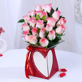 Surprise your partner with this arrangement of pink roses, a quiet celebration of love. Presented in a box with a heart design, the blooms feel elegant and visually striking. The gentle hues reflect affection, admiration, and emotional warmth, making the gesture truly unforgettable. Thoughtfully arranged with lush green accents, the box adds another layer of charm. Ideal for meaningful surprises, these Valentine roses capture feelings that words often fall short of expressing.