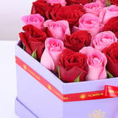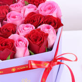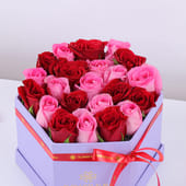 Love speaks in whispers of crimson and blush, making this arrangement perfect for Valentine's Day and every moment your heart calls for expression. Twenty-four exquisite roses—twelve in deep, velvety red and twelve in soft revival pink—create a stunning symphony of romance within a sophisticated purple box. The rich contrast between passionate red and tender pink captures the full spectrum of devotion. Whether celebrating your beloved or simply reminding them they're cherished, these premium blooms convey what words often cannot—pure, enduring love wrapped in timeless beauty.