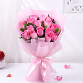 Wrap your love in the timeless beauty of pink roses, elegantly arranged in soft pink non-woven paper. These delicate blooms, tied with a charming ribbon, are the perfect way to convey your affection. Whether for Valentine's Day or any other romantic moment, this bouquet is a stunning gesture to celebrate love in its purest form. Let the soft hues and sweet fragrance of these roses make every moment unforgettable.