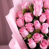 Soft pink roses rest like shy confessions of young, naive love, wrapped gently in light pink paper that mirrors their delicate hue. The beautiful bouquet glows with purity and charm, its pastel tones painting a picture of grace, elegance and calm. Tied with a satin ribbon, it feels like a quiet celebration of affection. This is the type of bouquest that tends to capture tenderness in its truest form. It is perfect for lighting up blooming hearts and reminding your special someone how deeply they’re cherished.