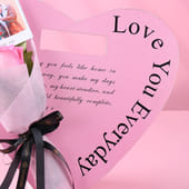 Get this charming bouquet that features two delicate pink roses, elegantly wrapped in soft pink non-woven paper and presented in a designer heart-shaped flap. Accompanied by a personalised Polaroid photo with an "I Love You" message, it’s a thoughtful and unique gift to celebrate your love. The heart-shaped holder adds a romantic touch, making it perfect for the Anniversary, Valentine's Day, Rose Day, Propose Day, or any celebration of love. A simple yet meaningful expression of affection that will make your loved one feel cherished and loved every day.