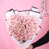 A romantic gesture wrapped in elegance, this heart-shaped bouquet of light pink roses is a beautiful way to express affection. A thoughtful gift that will make anyone’s heart flutter, it’s ideal for Valentine's Day, anniversaries, or just to brighten someone’s day with a soft display of love. The delicate pink roses, surrounded by white premium paper, come together to form a stunning visual of pure love and warmth. It’s the perfect way to tell someone you care, with each bloom carrying a whisper of romance and grace. Give the gift of love, beautifully wrapped and heartily delivered.