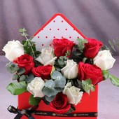 A message of love wrapped in timeless elegance, this floral arrangement pairs pristine white roses with deep red ones, a classic combination that speaks straight to the heart. Nestled beautifully in a red envelope-style box with playful polka dots, it’s a gift that blends charm with sophistication. Whether you’re expressing love, gratitude, or admiration, this arrangement captures it all with grace. Perfect for birthdays, anniversaries, or heartfelt surprises, it’s a stunning reminder that emotions, when expressed with flowers, bloom brighter than words ever could.