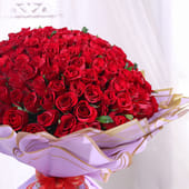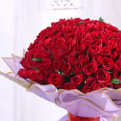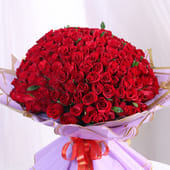 Leave a lasting impression on your loved one with this exquisite bouquet featuring 250 radiant red roses, carefully arranged to create a luxurious, eye-catching display. The rich hues symbolise love and passion, making this bouquet the perfect choice for expressing heartfelt emotions. Wrapped in elegant purple paper and finished with a satin ribbon, it’s sure to leave your partner in awe of its grandeur and beauty. Ideal for occasions like Valentine’s Day, it perfectly conveys what is in your heart. These Valentine roses truly make every moment unforgettable.