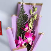 This elegant bouquet features a single stunning purple orchid, symbolising luxury, beauty, and strength. Wrapped in premium paper, it exudes sophistication and charm. Perfect for a variety of occasions, whether it’s to express love, admiration, or simply to brighten someone’s day, this beautiful orchid is sure to leave a lasting impression. Its striking colour and graceful form make it a truly special gift that conveys your sentiments in the most refined way. Order it for Anniversary, Birthdays, and Valentine's Day Gifting.