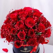 A gift so full of love, it speaks without words. The bold red roses stand tall and proud, each bloom carrying a message of unwavering affection and passion. Surrounded by delicate sprigs of gypsophila, their soft whispers highlight the beauty of the moment. Set in a sleek black box, this Valentine bouquet is a perfect blend of romance and elegance, the ribbon a subtle promise of your deep devotion. It's a celebration of love, a tribute to the connection that grows stronger with each passing day. The perfect gesture for someone who holds your heart.