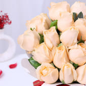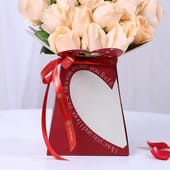 Delight your partner with this arrangement of peach roses, bringing a romantic touch to any moment. Presented in a box with a heart design, the roses create a soothing visual that feels calm, thoughtful, and beautifully composed. Their delicate peach tones reflect admiration, sincerity, and quiet affection, conveying your feelings in a memorable way. Finished with fresh green accents, the arrangement carries a refined charm. These Valentine roses are a gesture you can’t go wrong with.