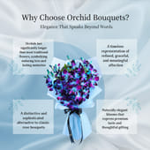 Bring a sense of calm with these blooming blue orchids. Their rich tones of aqua, violet and midnight blue create a striking display that feels both modern and poetic. Each stem opens gently, offering soft movement and depth, while the layered greens inside the clear fish bowl add a grounding, natural touch. This arrangement suits thoughtful gifting, home decor or moments when you want something beautiful without being loud. Its soothing palette and graceful form make it a gifting pick that feels refreshing, expressive and effortlessly stylish.