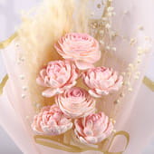 Blush tones and soft textures come together in this delicately styled bouquet that feels light, warm, and quietly charming. Featuring pastel pink blooms paired with airy pampas and subtle dried accents, the arrangement creates a graceful, soothing presence. Wrapped in premium pink paper and tied with a gentle ribbon, it carries a soft, romantic appeal without trying too hard. Perfect for birthdays, sweet gestures, or simply brightening someone’s day, this bouquet expresses affection in the most effortless and beautiful way.