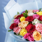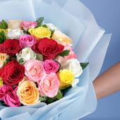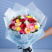 This breathtaking bouquet brings together the elegance of roses and the vast beauty of the sky. With 30 vibrant mixed roses wrapped in soft blue paper, it evokes a sense of serenity and grace, much like a sky full of blossoming flowers. Each petal tells a story of love and joy, making it the perfect gift for any occasion. Whether you're celebrating a milestone or simply sending a message of affection, this floral arrangement speaks volumes, blending the softness of roses with the calm of the sky for a truly poetic gesture.