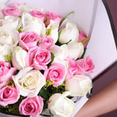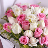 Graceful and elegant, this bouquet brings together the purity of white roses and the gentle charm of pink roses, creating a breathtaking floral expression of love and admiration. Wrapped in premium white paper and finished with a soft ribbon, it is a gesture that feels both delicate and meaningful. Perfect for birthdays, anniversaries, or heartfelt surprises, this arrangement radiates warmth and tenderness. Each rose is handpicked to ensure freshness and beauty, making the bouquet a stunning way to celebrate moments, convey emotions, and leave lasting memories.