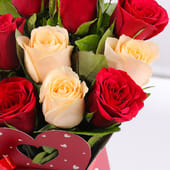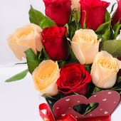 Presenting the ultimate gift for occasions like Valentine’s Day or when you want to convey your love to your partner. This charming arrangement features twelve peach and red roses beautifully arranged in a box with a heart design. The blooms represent warmth and admiration, while the sophisticated packaging exudes romance and elegance. Ideal for expressing affection, appreciation, or simply brightening your sweetheart’s day, this timeless floral arrangement promises to create lasting memories. It is a graceful and heartfelt gesture that is sure to be a hit.