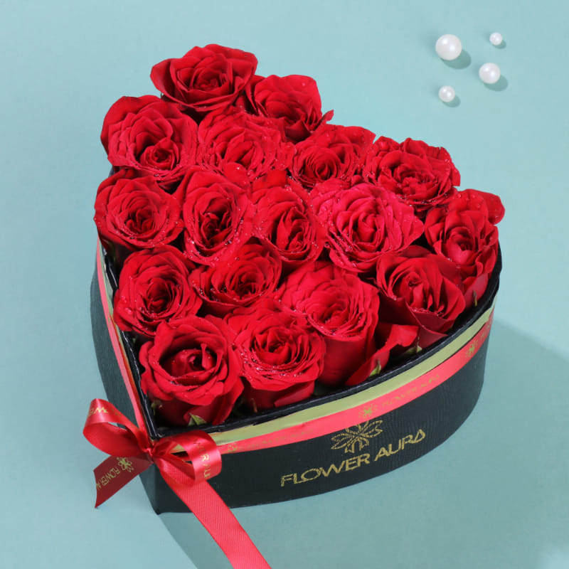 Seventeen lush red roses arranged in a heart-shaped box make this bouquet the perfect symbol of love and passion. Ideal for anniversaries, proposals, or romantic surprises, it delivers elegance and emotional depth. A luxurious gift for someone truly cherished.