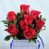 Bold red roses rise proudly from a soft blue plaid box that reads ‘Love You Bro, You’re The Best.’ Eight fresh, velvety petals paired with lush greens create a striking contrast that feels both strong and sincere. Thoughtfully arranged to stand tall, this floral box speaks volumes without saying too much. Whether it’s Rakhi, Brother’s Day, a birthday or just because, this piece is a warm reminder that your brother is your built in hero, partner in mischief and forever supporter. A gift that blends charm, emotion and effortless style in one unforgettable gesture.