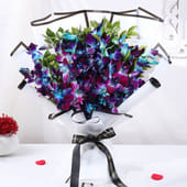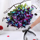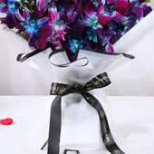 A gift that speaks louder than words, this bouquet brings together the cool serenity of blue orchids, delicately wrapped in premium white paper. Each bloom seems to capture the stillness of a calm morning, offering a soft yet striking beauty that can brighten any moment. Whether it’s for someone you cherish or a gesture of thoughtfulness, this bouquet is more than a gift; it’s a memory wrapped in petals. It says all the things you might find hard to express, with elegance, grace, and a touch of timeless charm. Perfect for celebrating love, friendship, or a personal milestone.