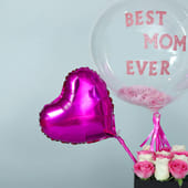 Leave a permanent impression on your beloved mom on upcoming special occasions with these best mom flowers n balloons. This heart-melting surprise comes with twelve white and pink roses in a black square box, a pink bobo balloon with pink fillers, the best mom sticker, and two pink heart foil balloons.