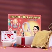 Cherish the love and devotion this Karwa Chauth with a hamper that brings hearts together. Golden Besan Ladoos shine like little suns, sweetening every shared moment. A Decorative Thali and ornate Strainer capture the magic of the evening ritual, while the decorated Steel Glass glimmers alongside vibrant Sindoor and sparkling Bindi. Kalimirch Cashews and BBQ Almonds add a crunchy delight, perfect for sharing. Every element honours togetherness, laughter, and love, making the day truly unforgettable.