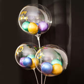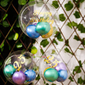 1st Anniversary, Birthday, Silver Jubilee, or anything, a stunning balloon bouquet complements the gift and cake you get for your precious one’s special day. Get this customisable bouquet of Bobo Balloons filled with striking green, blue, gold, and purple chrome balloons and a bunch of the same coloured balloons at the bottom of the stand.