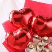 A delightful expression of love, this romantic balloon bouquet combines indulgence with charm. It features a stunning heart-shaped foil balloon, a symbol of your deepest affection, along with a carefully curated Ferrero Rocher gift pack. Wrapped in elegant non-woven paper, this thoughtful gift radiates warmth and sweetness. Perfect for celebrating romantic moments or surprising that special someone, it’s an ideal gesture for Valentine’s Day or anniversaries. Let this beautiful bouquet be the perfect way to say, "You are cherished."