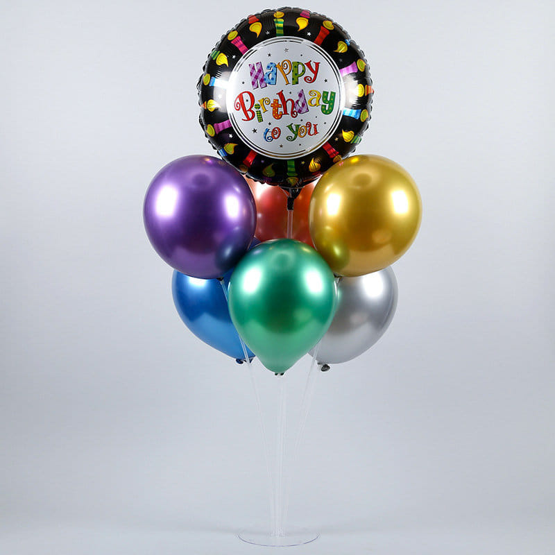Enhance your loved one's birthday celebration with this beautiful balloon bouquet. With six colors of polka dot balloons with one happy birthday balloon, this will be a perfect bouquet to adorn a small gathering. So, grab it today and surprise your beloved ones with it.
