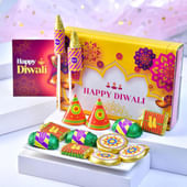 Like the sparkle that lights up every home, this box spreads joy wrapped in sweetness. Each cracker-shaped chocolate bursts with delight, echoing the festive spirit of togetherness and happiness. The radiant Diwali-themed box glows with colours of hope and celebration, while the greeting card adds warmth to every heartfelt wish. Perfect for sharing love and laughter, it captures the magic of the festival, where sweets replace sparks, and smiles shine brighter than Diyas.