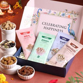 Add a burst of flavour to festive gifting with this handpicked Celebration Box that brings together a tempting mix of premium snacks. Inside, you’ll find the smoky crunch of BBQ Almonds, the bold spice of Kalimirch Cashews, the refreshing twist of Paan Raisins, and a wholesome Trail Mix for guilt-free munching. Packed in an elegant box designed to impress, this hamper blends health, taste, and festive joy in perfect harmony. Whether shared with loved ones or enjoyed solo, it’s a thoughtful gift for Diwali, Bhi Dooj, and other auspicious occasions.