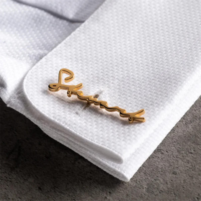 Make a bold statement with these personalised golden cufflinks, designed for men who value fine craftsmanship and individuality. The sleek, cursive design of the name adds a unique, stylish touch to any formal or semi-formal attire. These cufflinks reflect style and sophistication, making them the perfect gift for special occasions like Valentine’s Day, weddings, or anniversaries. Your loved one is sure to appreciate this gesture, as these cufflinks are both sentimental and practical.