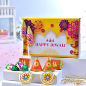 Bring home the fragrance of festivities with this Diwali hamper that beautifully blends charm, aroma, and joy. It includes two refreshing room fresheners to fill your home with delightful scents, vibrant cracker-shaped chocolates for a playful festive touch, a glowing tealight for warmth, and a bright Diwali card that shares your heartfelt wishes. Thoughtfully packed in an elegant Diwali box, this hamper is a perfect way to spread happiness, light, and freshness this festive season.