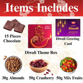 This Diwali, bring festive joy with a thoughtfully curated hamper that blends the best of sweet and healthy treats. The box includes premium almonds, tangy cranberries, and a colourful mix of dried fruits, all perfectly paired with indulgent handmade chocolates. Each item is carefully selected to offer a delightful balance of health and indulgence. The festive ‘Happy Diwali’ greeting card and traditional design add a personal touch, making this hamper an ideal gift for your loved ones to celebrate the season of light and happiness.