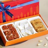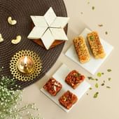 Share the sweetness of tradition with this Evergreen Mithai Gift Box, thoughtfully curated for Diwali, Bhai Dooj, and all joyous celebrations. Brimming with classic favourites like Dodha Barfi, Kaju Katli, and Alwar Milk Cake, it captures the true essence of Indian festivities. Packed in a vibrant festive box and paired with a greeting card, this hamper makes every occasion memorable. A perfect way to spread love, joy, and togetherness, this mithai box is a timeless gift for family and friends.