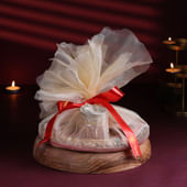 Strengthen the bond of love and devotion with this Karwa Chauth set that brings tradition alive in every detail. The decorative sieve and green Thali bring elegance to the ceremony, while the Karwa Chauth Vrat Katha book and calendar guide each tradition with reverence. Essentials such as Sindoor, a Mehndi cone, and a pack of designer bindis add festive authenticity. A steel glass and lotus-shaped Roli & Chawal container enhances the rituals with charm, while a glowing tealight candle sets a serene ambience. Thoughtfully arranged, this hamper captures the spirit of Karwa Chauth beautifully.