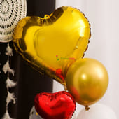 This charmingly beautiful arrangement will help you express how you feel like never before! The love-ly arrangement is made of golden and red heart-shaped balloons, a star-shaped balloon, golden and white round balloons, a pretty confetti balloon and of course, a cursive love balloon.
