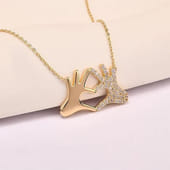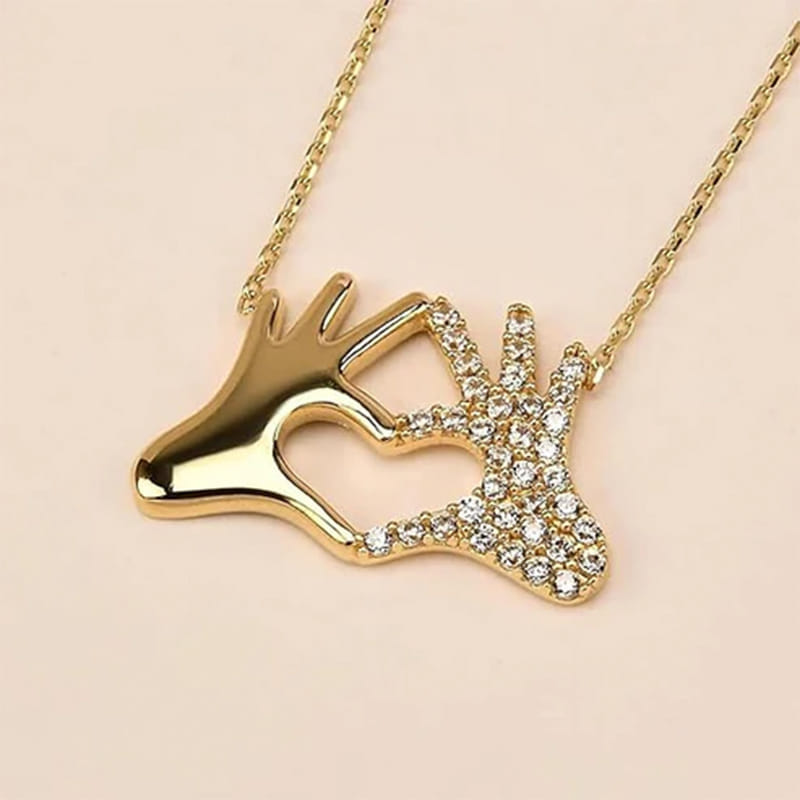Warm gold tones meet gentle symbolism in this necklace, where two hands come together to form a heart that feels anchored in connection and affection. Sparkling stone brings subtle sparkle without feeling flashy. The smooth finish and refined silhouette make it easy to pair with day?to?day outfits or smarter ensembles, adding a touch of elegance that’s quietly meaningful. Perfect for giving on occasions where sentiment matters most. Celebrate Valentine’s Day with something that speaks to the heart, or mark an anniversary with a gift that feels personal and cherished.