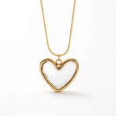 Add a timeless piece to her jewellery collection with the Elegant White Enamel Heart Pendant Necklace. Crafted with precision, the pendant features a lustrous white enamel heart, set in a sleek gold-plated frame that catches the light beautifully. The delicate chain complements the pendant, giving the necklace a graceful, sophisticated appearance. Perfect for gifting on special occasions or as a treat for yourself, this necklace is a beautiful expression of love and elegance. A stunning piece that effortlessly elevates any outfit, making it a thoughtful gift for her.